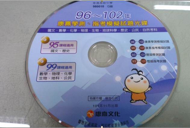 軟體名稱: 高中96-102年學測指考模擬試題光碟(全科目) 康熹