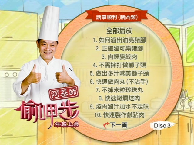 阿基師偷吃步 年菜上桌3 諸事順利 豬肉類料理 台語發音/繁體字幕 DVD版