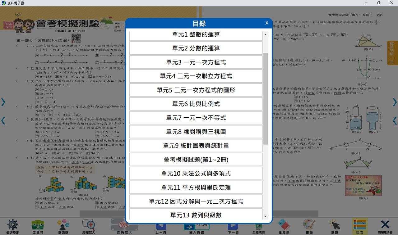 軟體名稱: 115學年 升高中 康軒版 麻辣-主題勝經複習講義-數學(全) 電子書教學