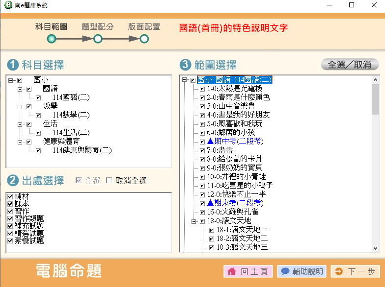 軟體名稱 114學年下學期 國小命題光碟 南一版 1-6年級 (全年級、全領域) 題庫
